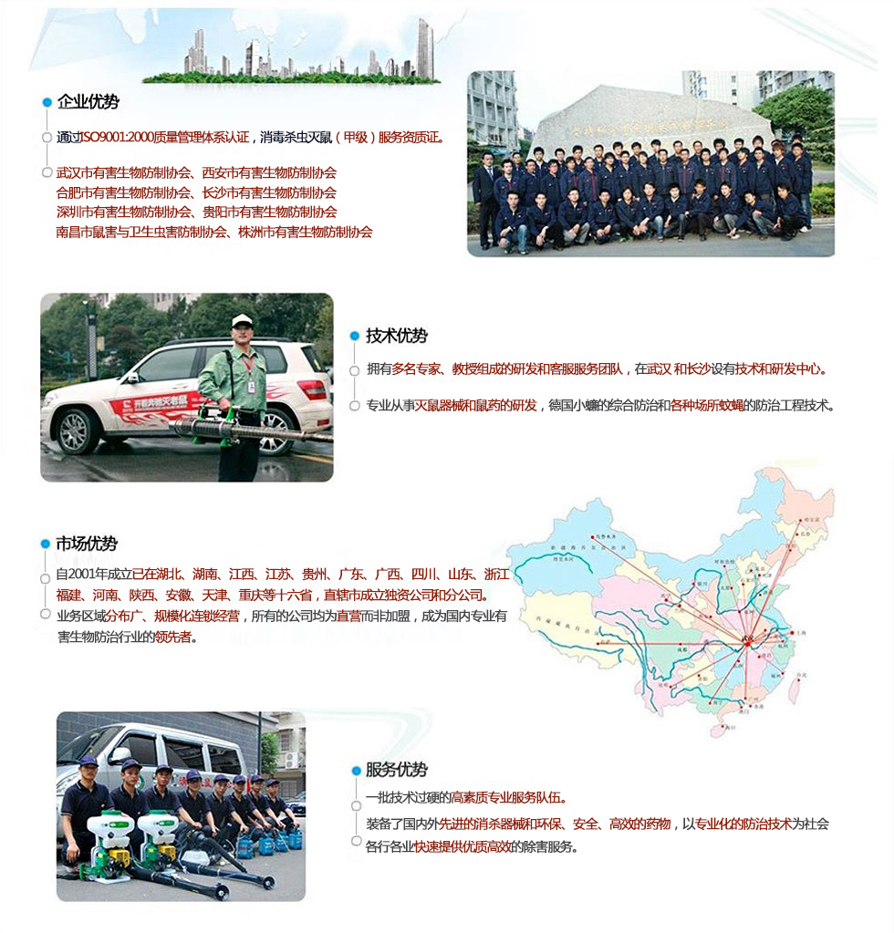 我們堅(jiān)持“誠(chéng)信、高效、安全、環(huán)!钡姆⻊(wù)宗旨,所用器械均為世界優(yōu)質(zhì)產(chǎn)品,所用藥物均系國(guó)家藥檢部門(mén)和衛(wèi)生防疫部門(mén)批準(zhǔn)的安全、低毒的城市衛(wèi)生用藥,并根據(jù)具體作業(yè)環(huán)境和防治對(duì)象情況變化,制定具體防制方案,保證優(yōu)越的防治效果和人體安全。